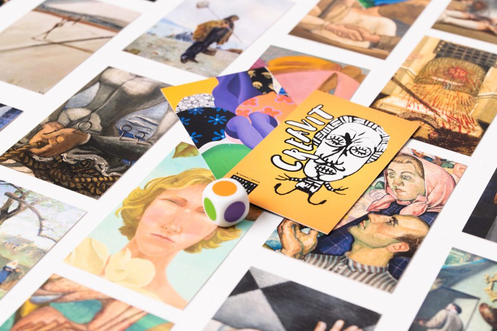 CREAVIT es un juego de mesa inspirado en el Dixit, que invita a las personas jugadoras a explorar su imaginación a través del arte. Cada carta del juego está ilustrada con fragmentos de obras pertenecientes al Museo de Bellas Artes de Asturias, transformando piezas artísticas en disparadores de historias, emociones y conexiones personales.