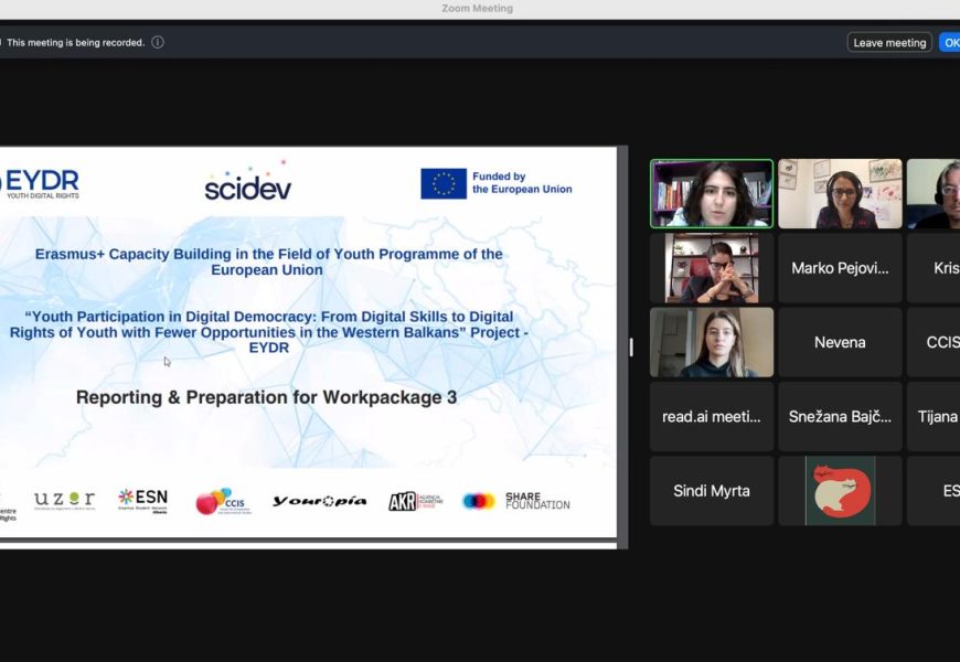 EYDR is funded by the Erasmus Capacity Building in the Field of Youth of the European Union and is implemented under the leadership of SCiDEV in partnership with UZOR, Beogradski centar za ljudska prava, Asociación Youropia, Centre for Comparative International Studies, Erasmus Student Network in Albania, National Youth Agency in Albania, and SHARE Foundation.