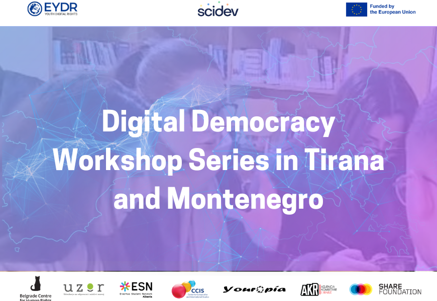 EYDR is funded by the Erasmus Capacity Building in the Field of Youth of the European Union and is implemented under the leadership of SCiDEV in partnership with UZOR, Beogradski centar za ljudska prava, Asociación Youropia, Centre for Comparative International Studies, Erasmus Student Network in Albania, National Youth Agency in Albania, and SHARE Foundation.